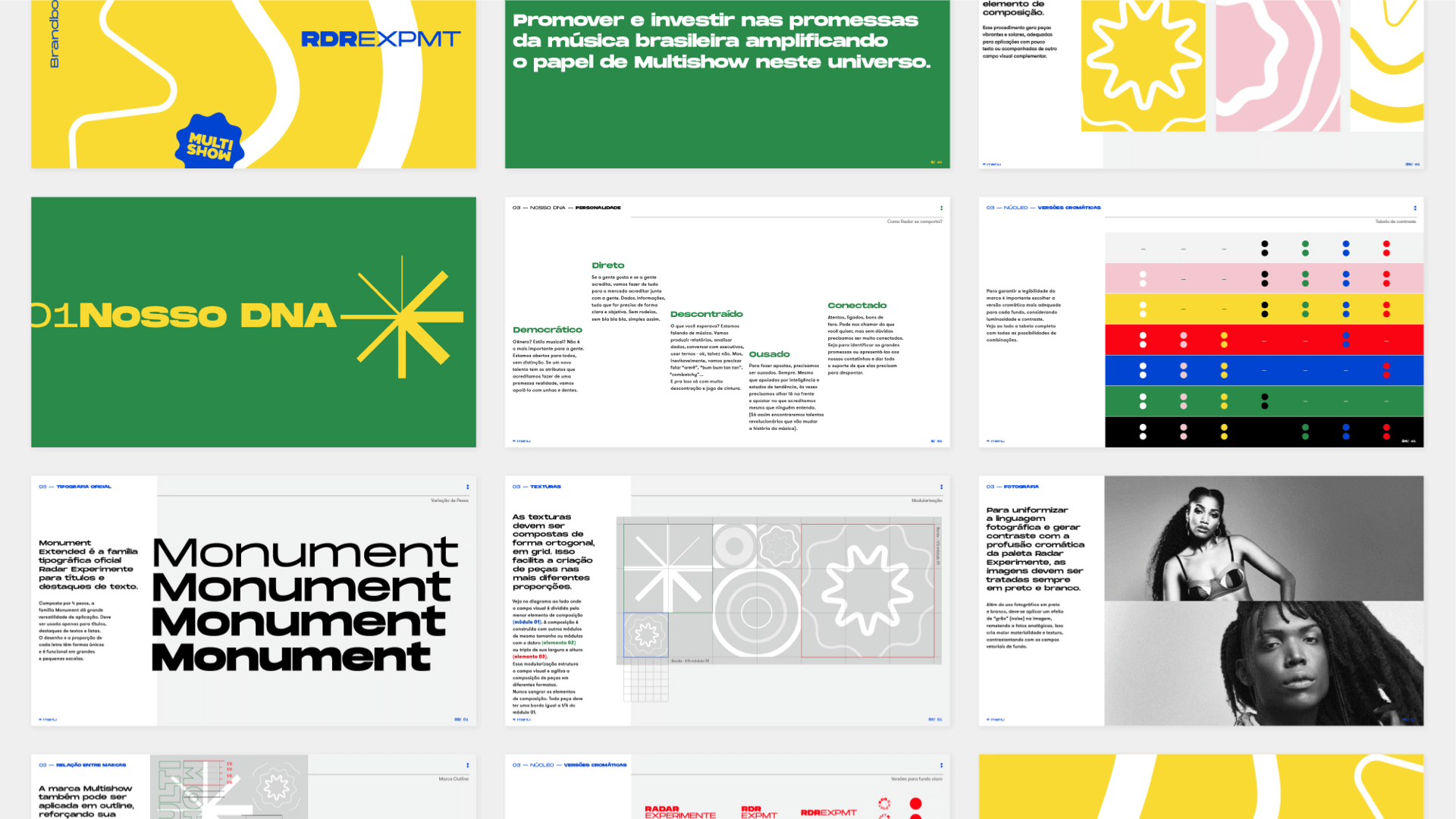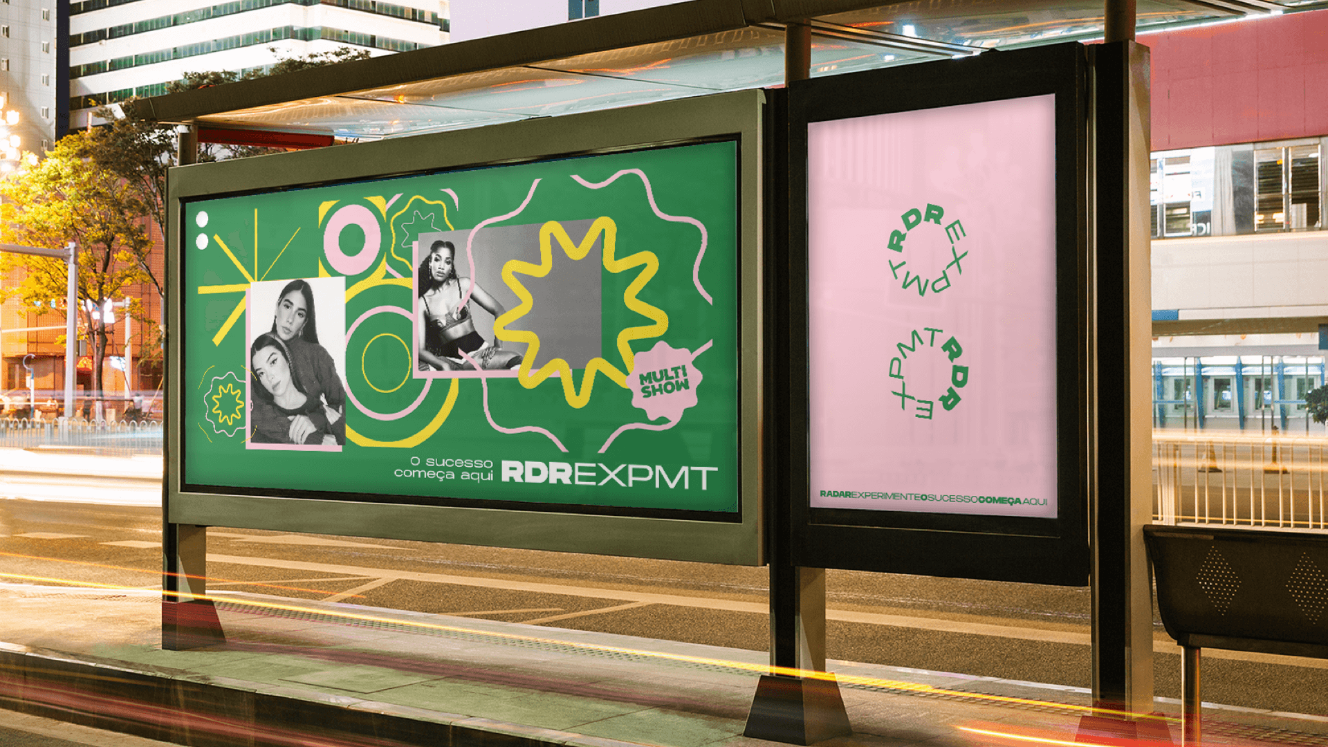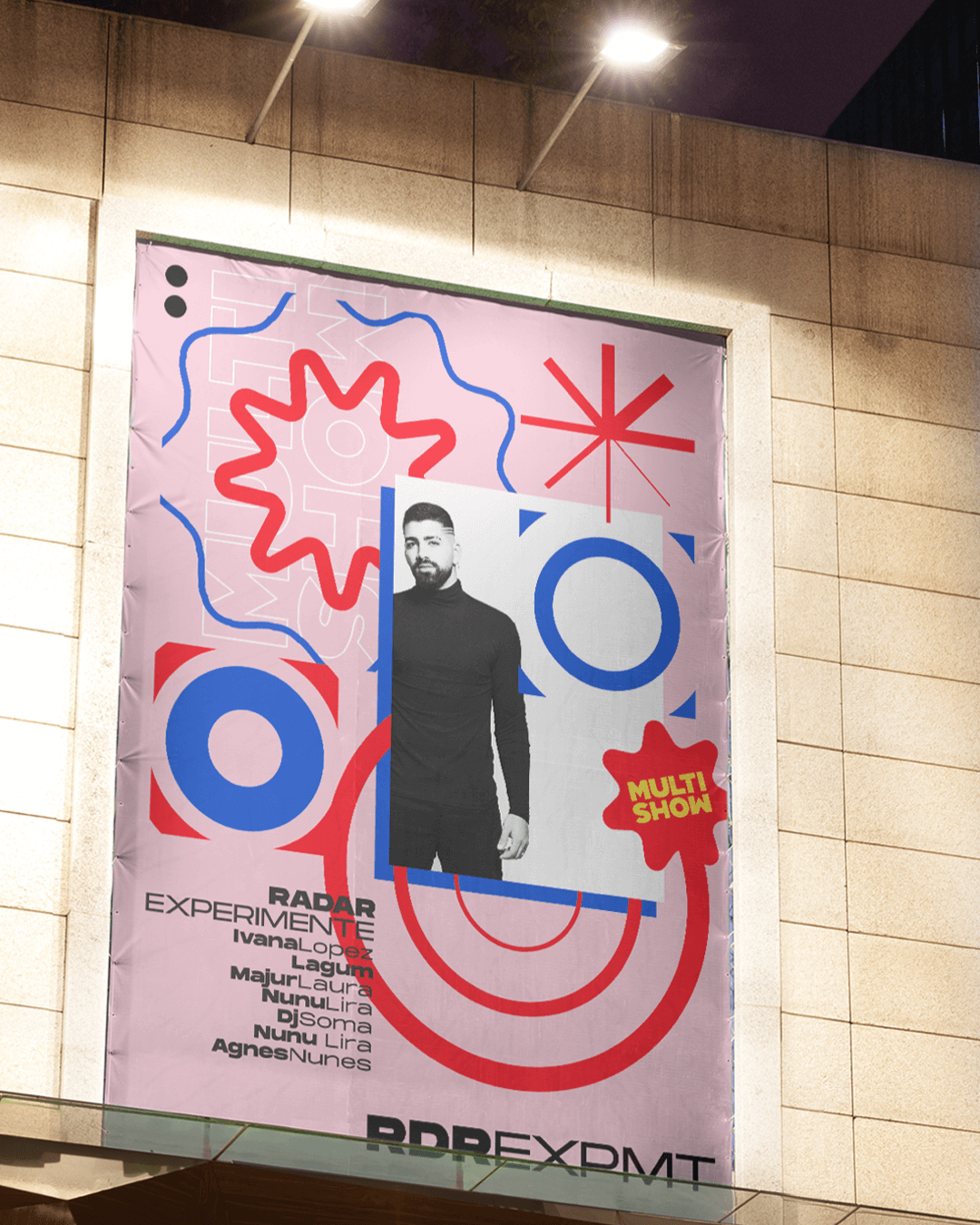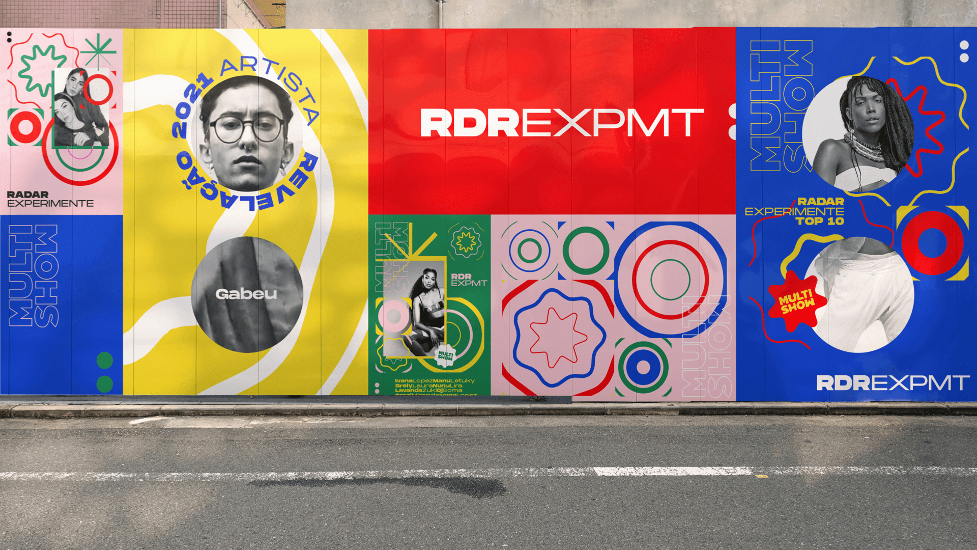 Assim nasce o Radar Experimente, cujo núcleo da expressão visual é composto por um tipograma especialmente desenhado para esta marca. Criamos também uma textura formada por três conjuntos de elementos, cada um indicativo de um aspecto do projeto: o Giro Radar, busca incessante por novos artistas; o Som na Cx, a finalidade em si que é de colocar tudo o que há de melhor e mais novo pra tocar; e, por fim, a Estrela Irradia, que ilumina e faz brilhar as novas revelações do mercado. Propusemos vocabulário e tom de marca descontraídos e divertidos, mas que passam toda a autoridade, objetividade e clareza que precisam caracterizar um projeto que se posiciona como referência no seu setor.